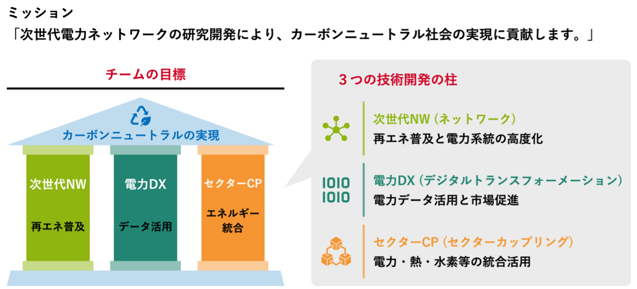 再生可能エネルギーの大量導入に対応できる柔軟で安定した電力ネットワークを構築し、デジタル技術と分散型エネルギーの統合によって、カーボンニュートラル社会を支える次世代エネルギー基盤を実現します。